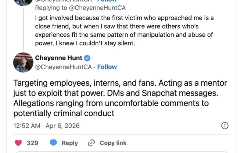 Hunt shared, “I got involved because the first victim who approached me is a close friend, but when I noticed others with similar stories of manipulation and power abuse, I felt compelled to act.” Allegations reportedly involve inappropriate direct messages and concerning interactions via Snapchat.