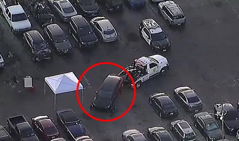 Police said the vehicle had been sitting at the lot for several days after being towed from the Hollywood Hills.