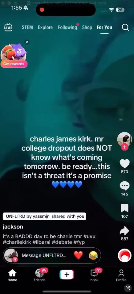 Another TikTok video surfaced with ominous text saying Kirk “does NOT know what’s coming tomorrow.”