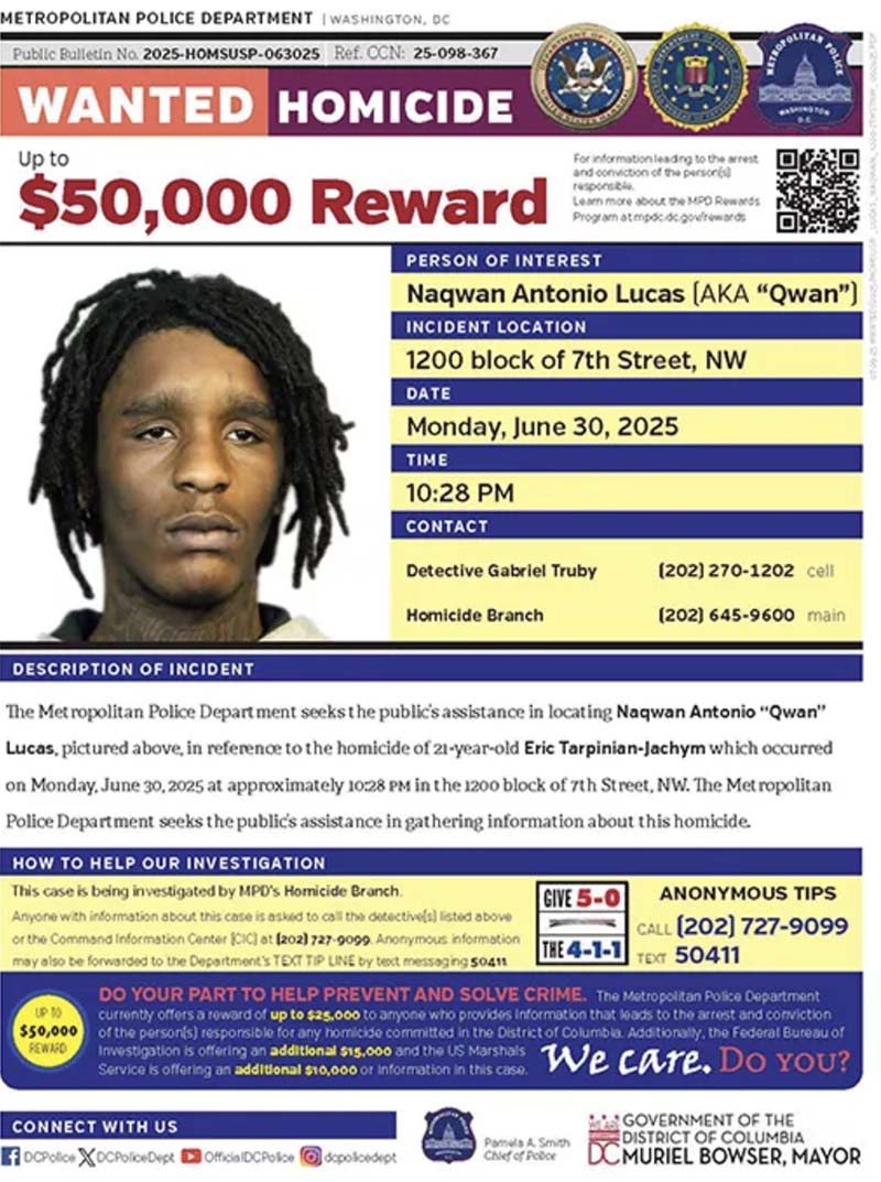 The Metropolitan Police Department offers a $25,000 reward for homicide cases.