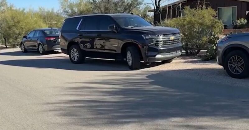 Video posted by Tucson KVOA-TV reporter Monica Garcia showed federal and local investigators moving through the property in gloves, carrying boxes believed to contain evidence. In one clip, a Customs and Border Protection agent is seen outside the home with a K-9 trained to detect drugs, explosives and missing persons.