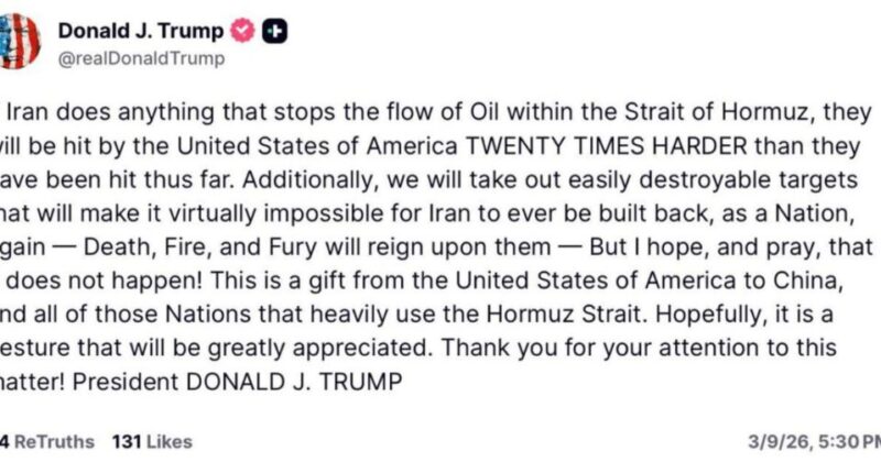 Meanwhile, Trump remains undeterred, asserting via a Truth Social post that any attempt by Iran to disrupt oil transportation through the Strait of Hormuz will provoke a sharply intensified U.S. military response.