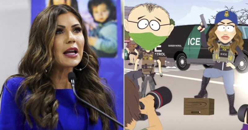 Homeland Security Secretary Kristi Noem is pushing back after “South Park” took aim at her appearance, portraying her as a vain, Botox-obsessed ICE agent who arrests Hispanics and kills puppies.