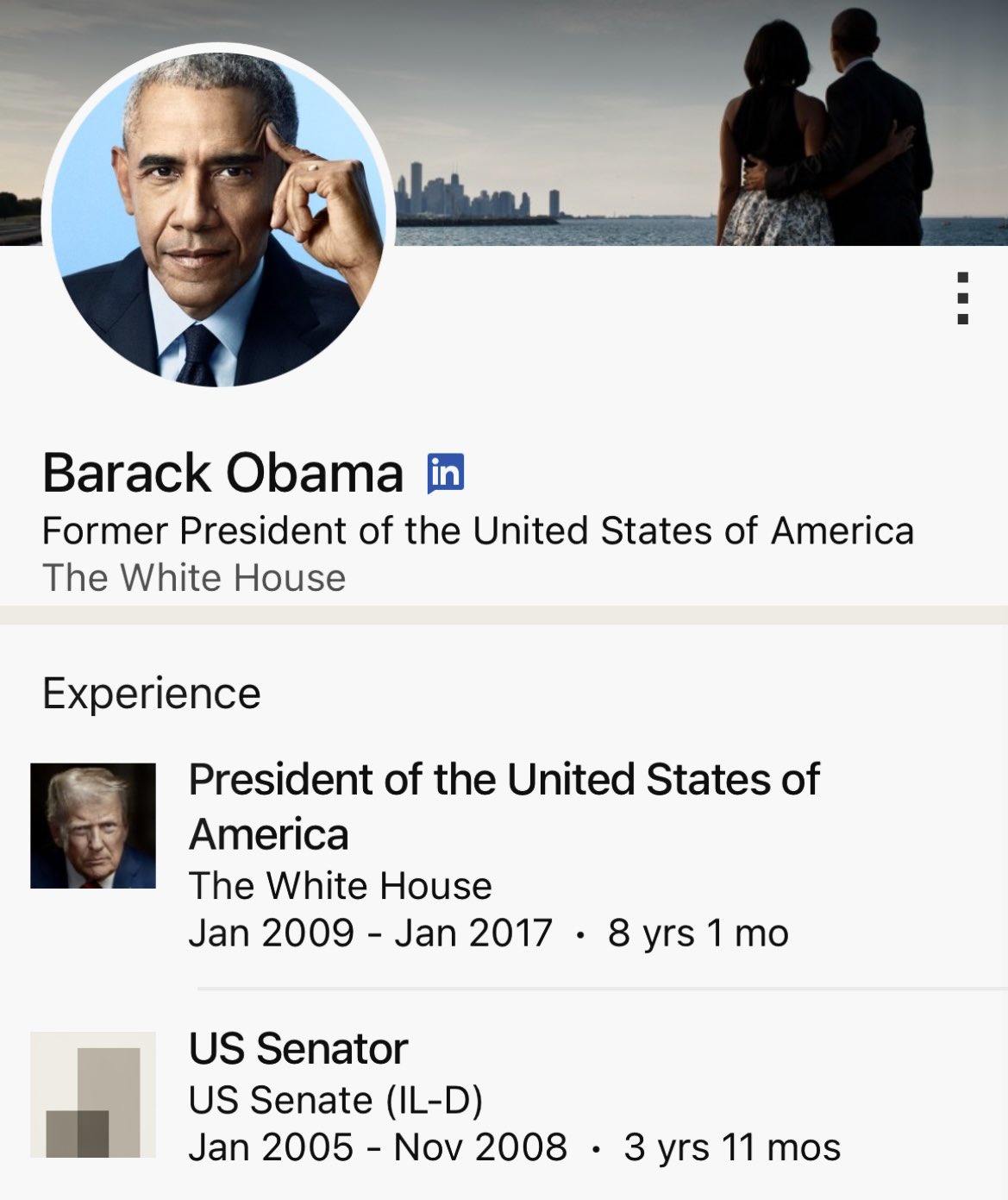 On Tuesday, LinkedIn users noticed that former President Barack Obama’s profile page — which lists “President of the United States” under experience — now displayed a picture of Trump’s face.