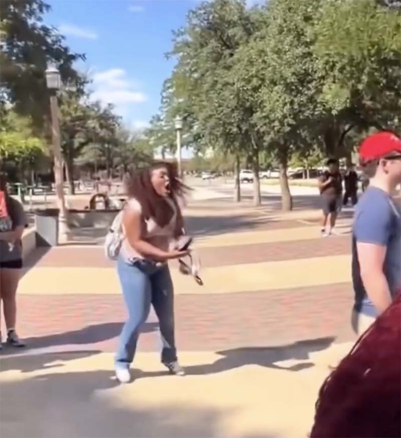 Videos showed her confronting a man in a MAGA hat, repeatedly shoving her phone in his face.