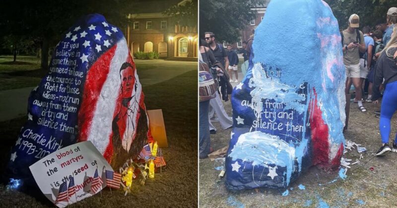 Students at the University of North Carolina Wilmington defaced a tribute to Charlie Kirk this week.