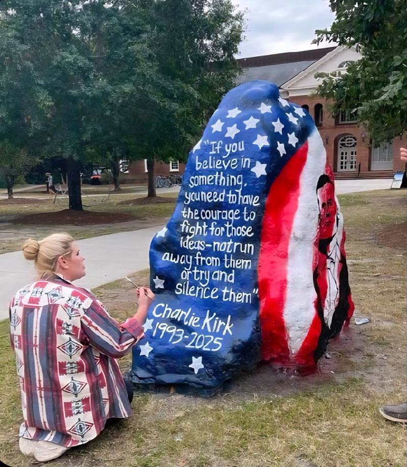 The rock had been painted to honor Kirk’s life and legacy.