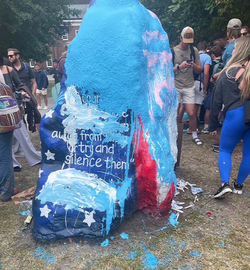 One male student dumped paint on the rock before the 24-hour courtesy period ended.