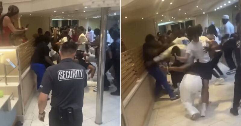 Video footage shows chaos erupting as several young cruisers traded wild punches, knocking each other to the ground while bystanders scrambled to avoid the scuffle. Shoes, phones, and personal items could be seen flying across the room.
