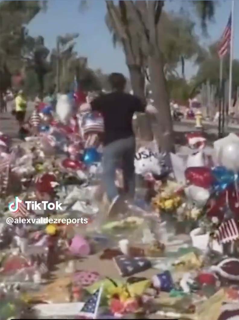 Witnesses said Corral approached the memorial and began knocking over tributes.